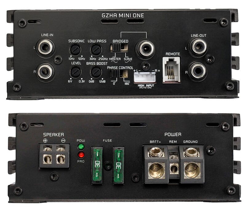 En basspakke som ikke bør undervurderes selv av de basshungrige. Lite fotavtrykk men voldsom ytlse ga inpirasjon til navnet "Little Giant". Denne basskassen fra tyske Ground Zero ble kåret til årest produkt av leserene av anerkjente Car & HiFi. Den drives av meget gode og monteringsvennelige GZHA MINI-ONE forsterkeren som er en av de beste til høynivåjobber (dvs at en tapper signal fra høyttalerledning) der man er avhengig av ekstra gode innebygde delefilter for å få et optimalt resultat.